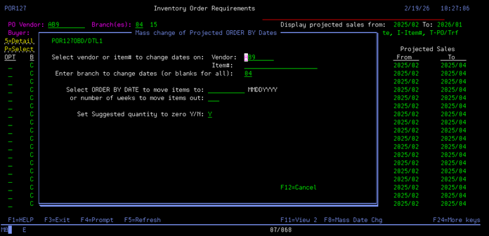If the item is for a regional warehouse, the branch and vendor code will be hi-lighted (white).