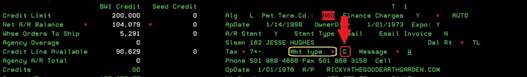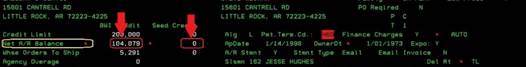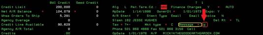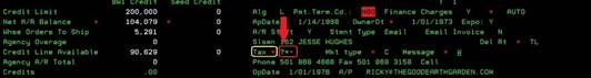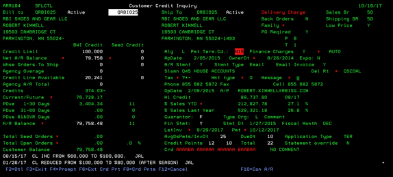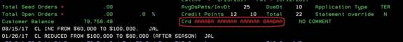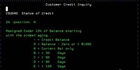 screen is full of credit information concerning the chosen customer. If this is