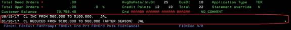 first. Use the PAGE DOWN button to scroll through the remaining notes. These are entered by the Credit Department in