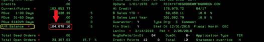 Net A/R Balance (BWI Credit or Seed Credit) This displays the