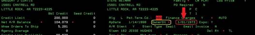 customer account. If you double RIGHT click on the date beside this field