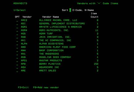 The Vendor must already be setup in Menu 5210 to be able to add them to this file. You can sort this
