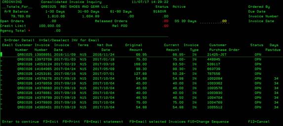 option will display all open invoices sorted by date for the selected