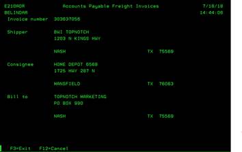 on the Accounts Payable Freight Invoice screen, you can enter a “5” on any