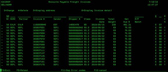 blank, you will see all freight invoices with errors for your designated branch. You can press F11 to see the descriptions for each