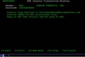 EDI invoicing programs. F19 (shift-F7) will display a