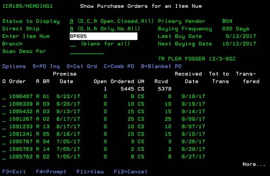option shows all purchase orders for this particular item, if applicable. You