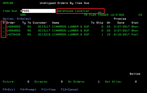 to toggle for more details; or “5”-select to access Customer Order Inquiry Menu