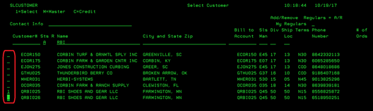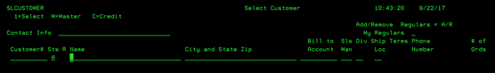 this screen, you can search by customer number, customer name, city/state/ZIP,