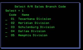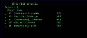While on the Open Order screen, you can select to filter by Division number. All branches under the division will be shown on your report. If you do not know the division number, you can press F4 while on this field to see the lookup feature. While the popup box is on the screen, you can use “1” to select the appropriate division and press ENTER. If the division isn’t shown, press PAGE DOWN to view the remaining choices.