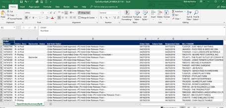Open Orders Excel Report. This report can