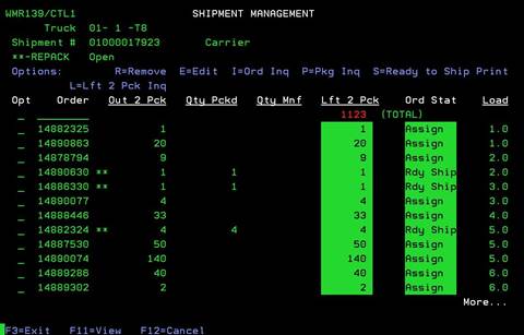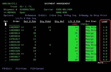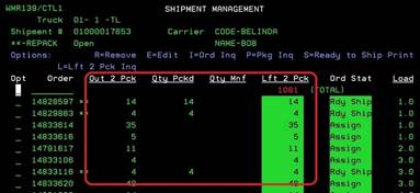 If you need to remove an order from the Shipment, you can place an “R” on the order and press ENTER.